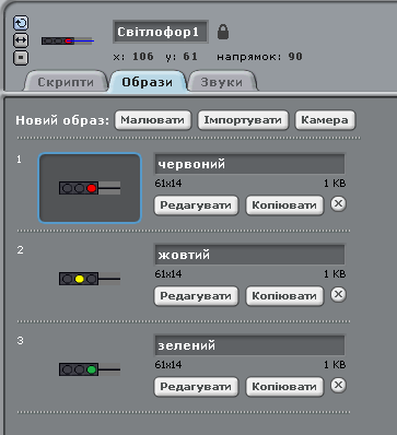На малюнку нижче подано образи об'єкту Світлофор1.