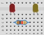 у полі Components знайти й перетягнути необхідну кількість резисторів, світлодіодів та контактну кнопку;