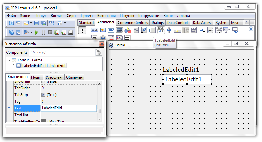 LabeledEdit з вкладення Additional має такі самі властивості, що й поле Edit.